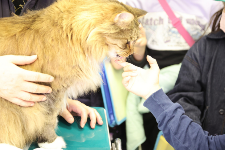 この日は、実際に通院している猫の患者さんにご協力をいただきました。